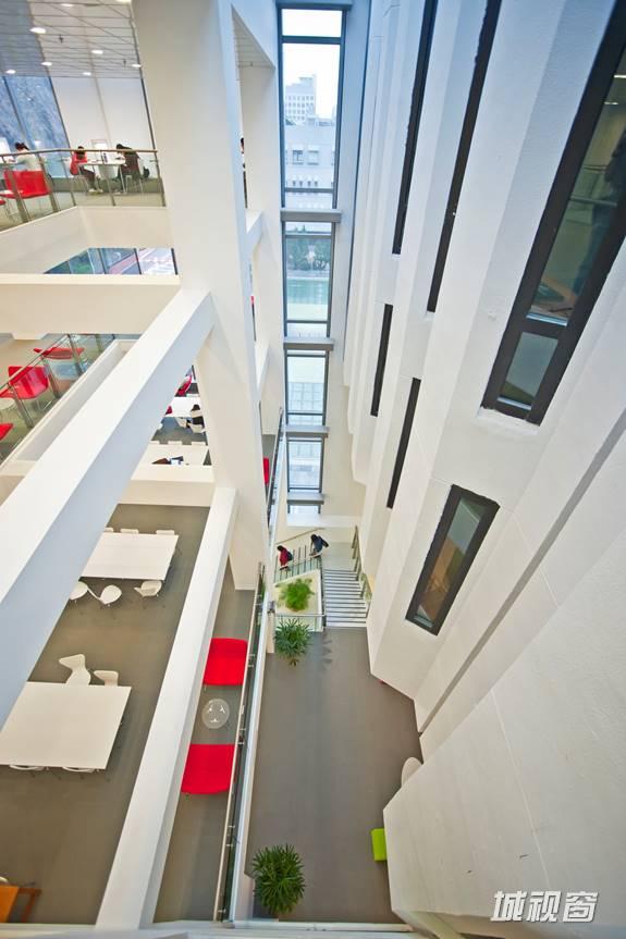 中文大学图书馆伫立于百万大道西侧,五层的白色建筑虽无摩天大楼的雄伟高度和花哨的色彩,却能与学校自然环境相融合。由于图书馆是中大最早的一批建筑群,环境保育成为摆在建筑师面前的第一难题。冯少文表示:“新翼建筑非新地标,希望它能低调融入已有环境,所以新翼楼高为五层,与图书馆主体大楼相同,这样也方便打通两栋建筑,但这也同样限制了可用空间,因而研究发展地下公用空间,但这样就要拆除地面的‘惠园’。”
