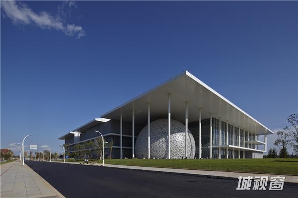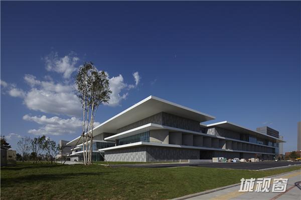 为了保证它们整体形象统一,设计团队结合建筑的体量和广场的空间尺度,以“舞台”这种设计理念创造了层层尺度不一的挑檐,使四栋建筑同中心广场有了统一的空间交融,各个挑檐也像从建筑中伸展出来的“舞台”,通过各自不同的表达方式把自己的文化内涵展示出来。同时为了突出人性化的设计理念,有别于历史上文化类建筑,四个场馆入口都是平进平出,和室外基本没有明显的高差,没有坡道和大台阶的设计,也体现了文化类建筑亲民的人文设计理念。