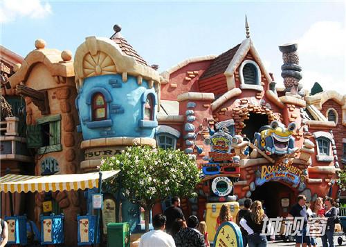 为了在人造环境中有质量地表达迪斯尼电影的想象力,表达电影中建筑物的节奏和韵律,迪斯尼采用了许多在电影中才会使用的戏剧效果,将他在电影制作中的卡通感性运用到建筑物上,为游客创造一个互动平台,让他们成为演员,拥有一段演戏经历。
