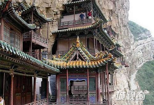 恒山如行很好地概括了恒山的气势。雄距塞北,群临旷野,恒山地处塞北高原之上,天气多晴朗之日,少云蒸雾缭之时,登高远眺,俯瞰近看,均能给人雄旷崇高之感。古人由此赞叹恒山“危峰过雁来秋色,万里黄沙散夕阳。”《笑傲江湖》中有恒山派,见性峰为恒山派总部所在。在令狐冲做恒山掌门前,恒山和峨眉山一样,也是女人山。悬空寺是恒山最为奇妙的建筑,令狐冲就是被哑婆婆绑在悬空寺。悬空寺靠西面东,俨若精巧、别致、玲珑剔透的玉雕悬于一幅巨大的屏风上。寺内共有殿宇楼阁40间。南北有三檐歇山顶危楼耸起,对峙而立,由低向高三层叠起,离地百余尺,附于绝壁上,三面环廊国抱、六座殿阁,相互交叉,飞架栈道相连,高低错落,木制楼梯沟通,迁回曲折,构思布局妙不可言、整个寺面似虚而实,似危而安,实中生巧,危里见俏,能让你体会到一种在国内其它寺庙体会不到的奇险感。