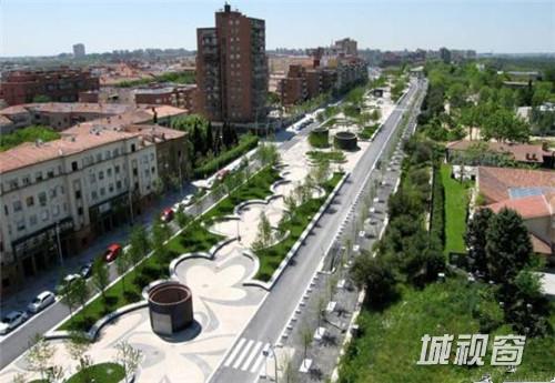 葡萄牙大道是马德里最重要的街道之一,设计者将它改造成了一个附有一个地下停车场的地下通道并将这里原来的高速改造成了一个供游客游玩的花园。地面有花一般的图案,地上种植着开满花的樱桃树,让人感觉无比浪漫。
