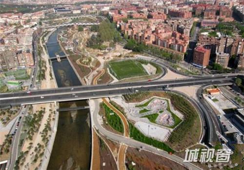 公园中最吸引人的景观莫过于曼萨纳雷斯河了,河流使人造基础设施和自然环境有机地结合在了一起。公园中有一条人行桥被Landarchs评为“Top 10 人行桥”。
