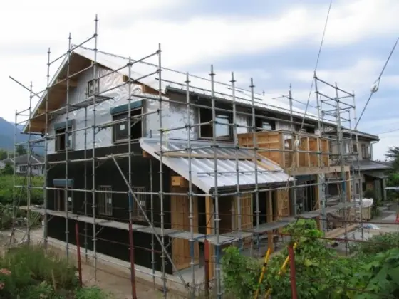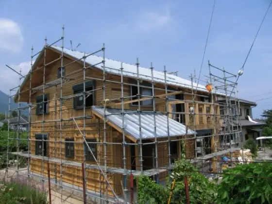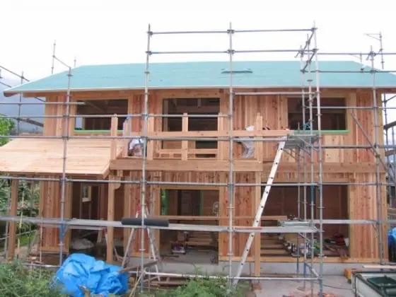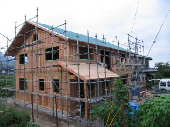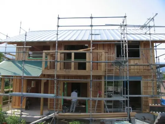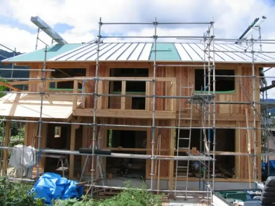 木结构屋架外侧,第一道屋面板以及保护膜,施工完成