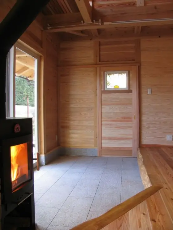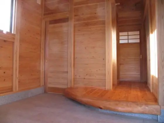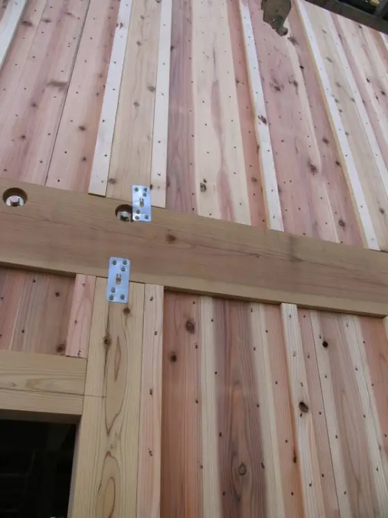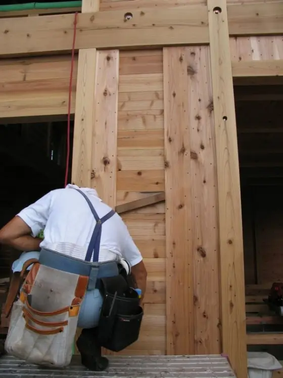 从图中可以看出,整体结构壁板,是沿着立柱一侧面上的沟槽,插入的木结构框架中的。