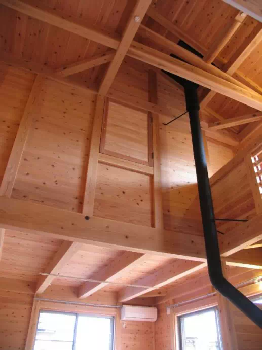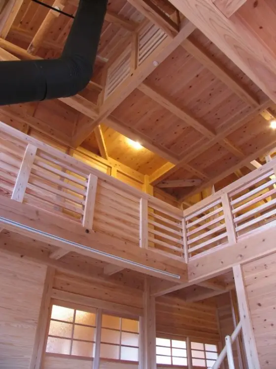 第一道屋面板的上部,为了通风透气防止木结构屋面的潮湿,特设置一层通风构造层木条,上面再准备安装第二道屋面板。