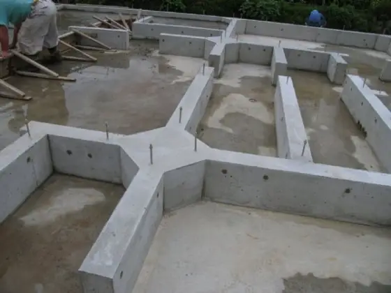 现浇钢筋混凝土地下架空层基础,混凝土凝结硬化养护之后,拆除模板,施工现场局部外观