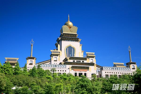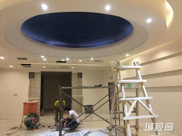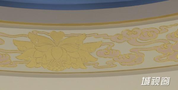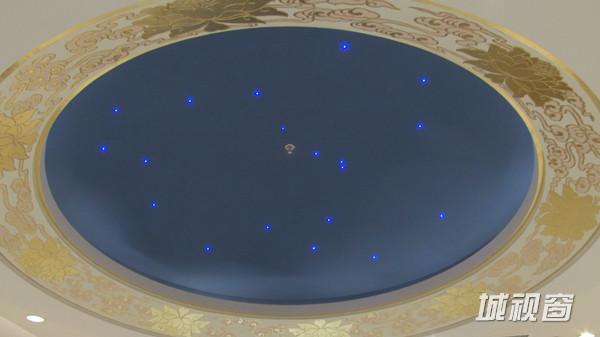 穹顶颜色为藏蓝色,用LED灯珠做成释迦牟尼涅槃重生之日星象图,寓意生命的超脱与轮回