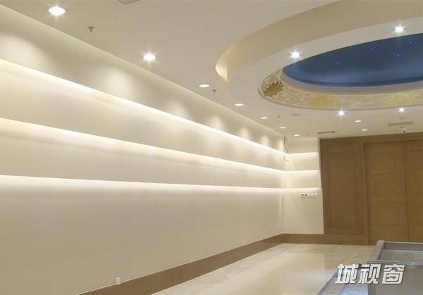 三条光带让墙面看起来一层一层往里收分的结构,并不是一个垂直的空间
