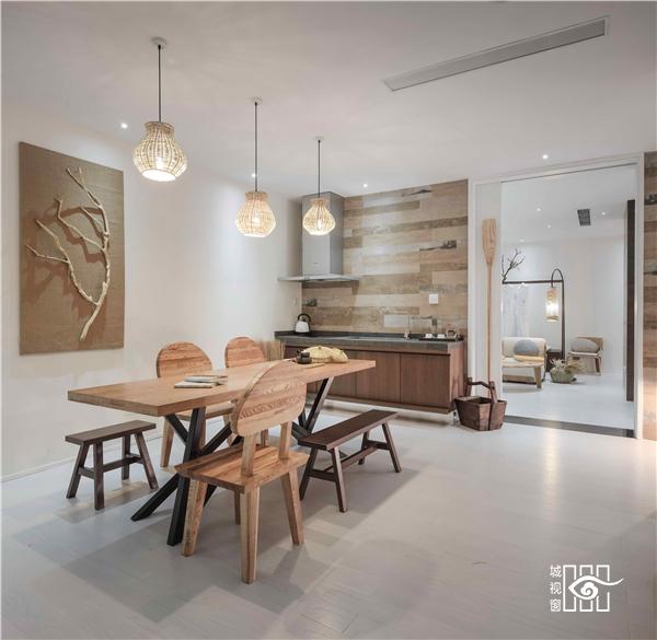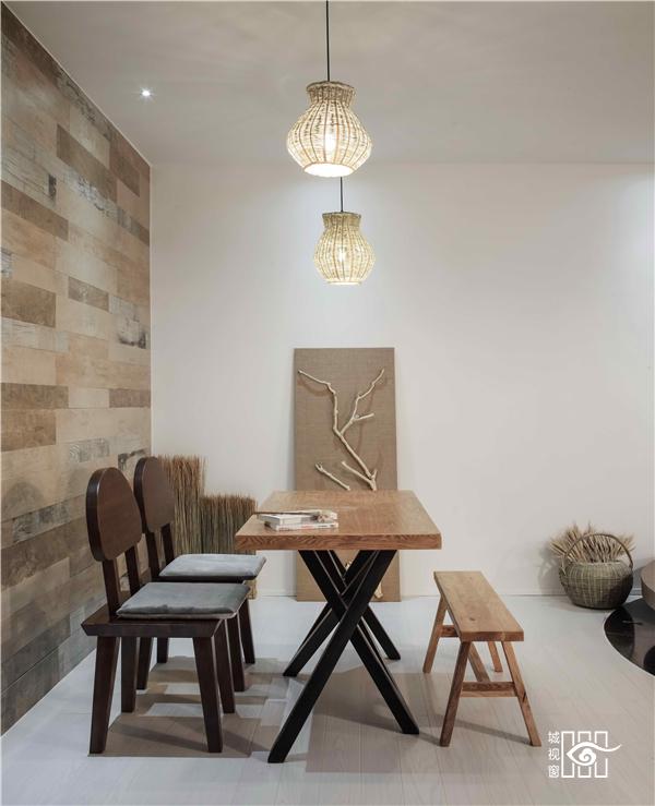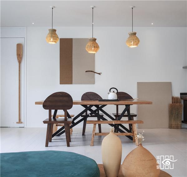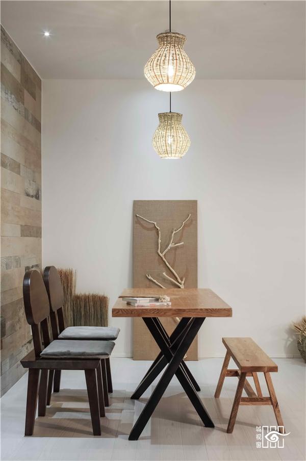 船桨被设计师化成了摆件,在餐厅里结合光影的互动,一幅画便如此。