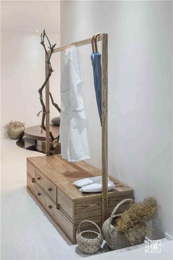 整个设计的材料均以木与竹为主,以此来表达一种亲近生态的质感。配以纯白色的主色调,不仅凸显了木质带来的宁静,也有一种简练的当代时尚气息。