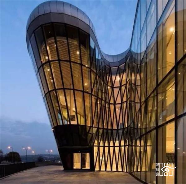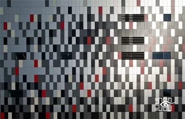 东面墙壁使用了玻璃、陶瓷和铝,表面非常光滑、流畅