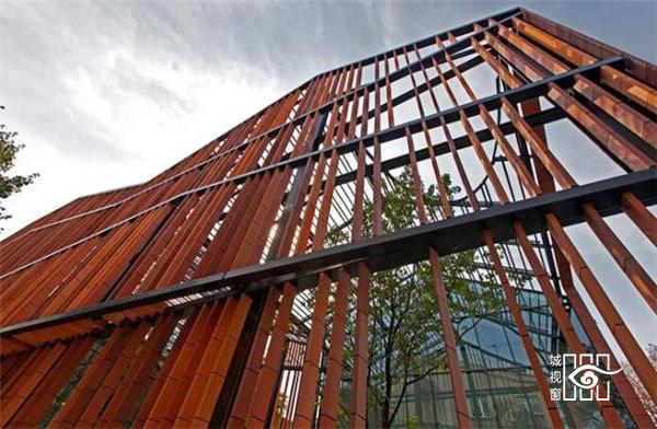 整个立面采用竖条格栅元素,清透的外观,尽显艺术氛围