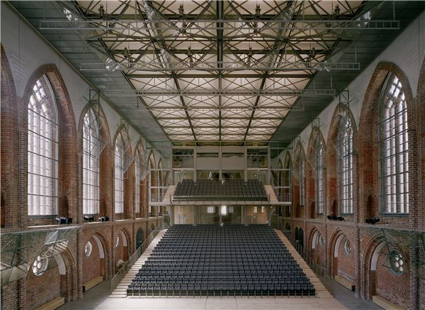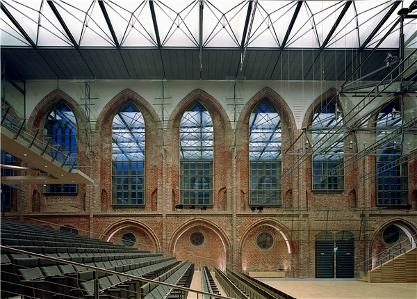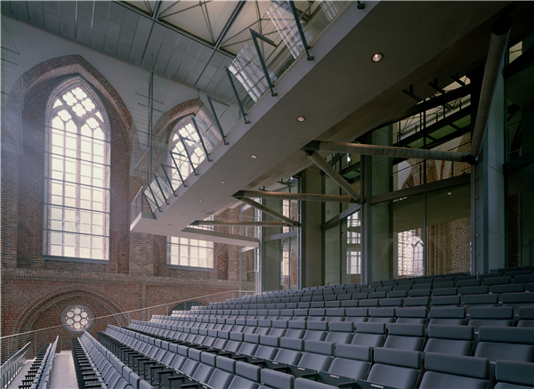 位于位于德国北部新勃兰登堡市的圣玛利亚教堂是中世纪以来最大和最重要的历史建筑,它是一个由红砖砌成的哥特式风格的会堂式教堂。由于该教堂在历史上经历过几次的损毁,新勃兰登堡市镇决定将其改建成音乐厅,修复并改造。