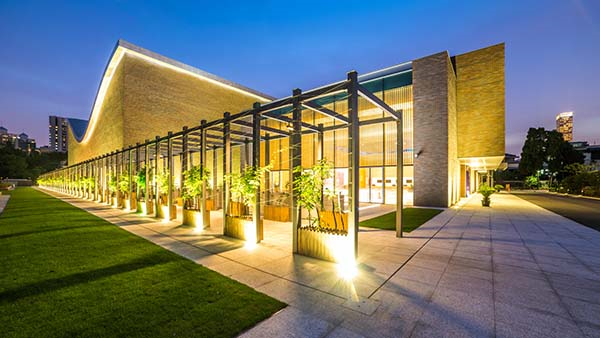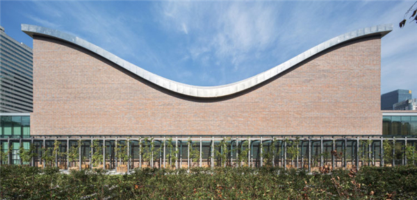 ▲黏土砖、灰砖、瓦片等元素构筑了上交音乐厅质朴无华的外立面,为了让建筑更加“灵动”,赋予屋顶以简约、轻盈、新颖的造型。