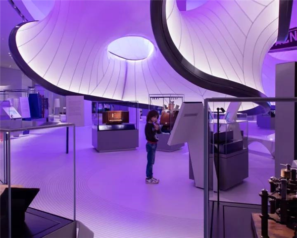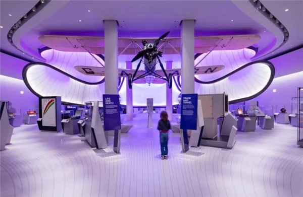在1929年古根海姆比赛中,Handley Page飞机以其短距起降和较短着陆距离成功试飞,代表着普通人民也可使用飞机出行的历史性一刻。展厅空间设置将重点放在了这架重要的英国航空制造出的产品,以及对数学和科学的转换能力上:在飞机飞行过程中提取其中一个至关重要的时刻为灵感,并体现出空气动力学的概念。