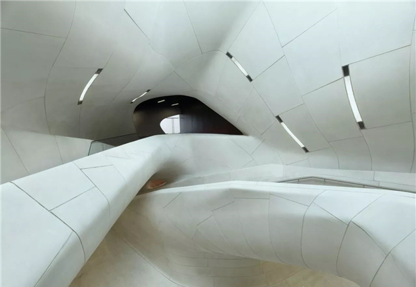 至此走廊将所有建筑空间联系在一起,使整个建筑空间成为一体。通过对走廊这一个空间的设计,使整个建筑空间都拥有了想要的效果——哈迪德的效果。