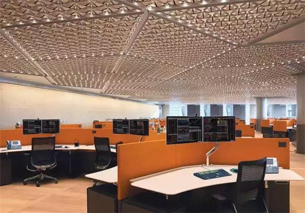 它实际上是一种冲压金属板,打磨过的铝板形成花瓣的样子,组合起来成为天花板。