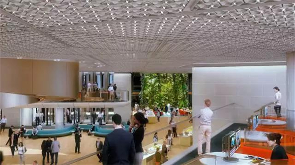 惊为天人的外墙,办公楼内部的节能环保性、开放的办公环境,具有人文价值的艺术品。