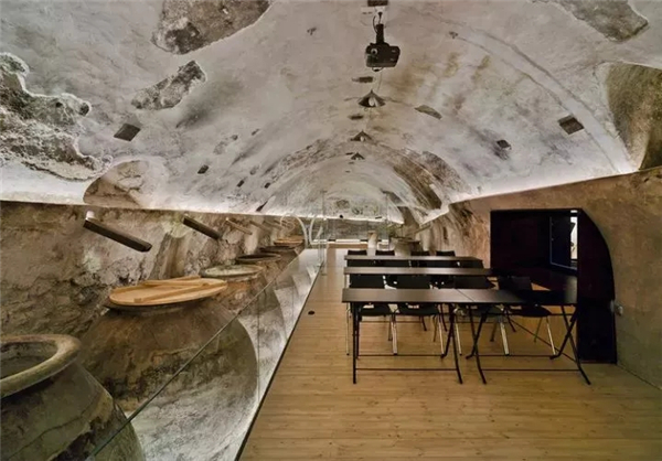 位于西班牙 Cehegín 的红酒学校是由翻新的酒窖改建而成,这里的红酒已经生产了一千多年。该项目的重点是保护原有结构,目地是可以更好向公众展示传统酿酒做法。因而现今呈现空间像山洞,对地下原有结构无大改动。