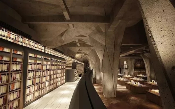 这座地下方所书店,建筑师把作为供外部人群紧急避难的场所概念注入。对于书店的入口,因其拥有狭长的空间廊道,可以将访客更好地汇聚在一起,通过洞状的空间戏剧性的拉开阅读空间的帷幕。