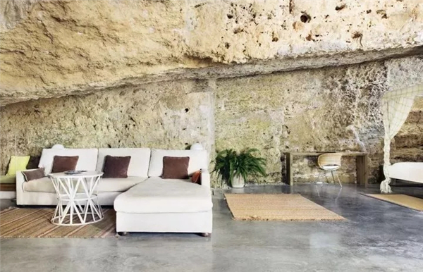 建筑师从这里生出了灵感,在这样的空间里设计出一个完整的住所。配备现代化的设计,巧妙地运用这种天然肌理作为房屋的天花板,粗糙的岩石表面融合到建筑中来,形成了强有力的连接。