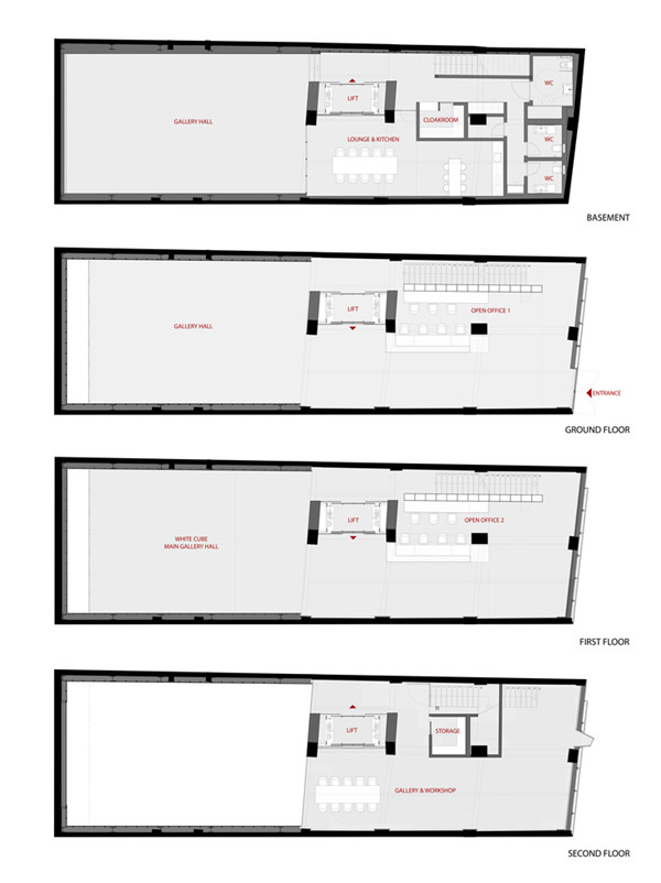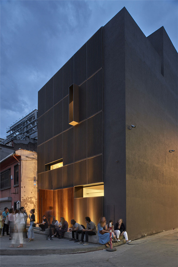 画廊位于该区的主要街道上,以其无烟煤色垂直百叶板覆盖的中性立面和整齐的线性开窗之结构特点吸引着人们的注意。