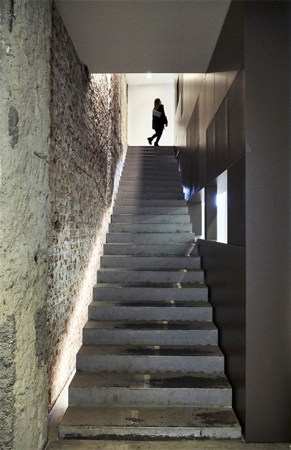在保持这个地方的灵魂完整的同时,我们在建筑结构的东北端嵌入了一个相对干净和棱角分明的“白色立方体”,以呈现出一种孤立的“艺术体验”。 通过应用间隙阴影和角度照明的设计,强调出裸露的旧结构和新附加的白色石膏展墙表面之间的惊人对立。