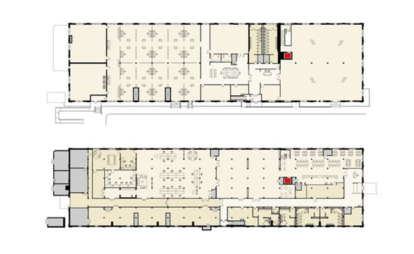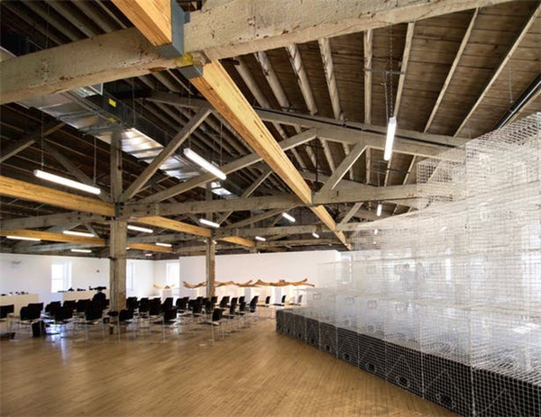 城视窗发现,为了适应组织的折衷方案,设计要求开放细长的两层建筑(以前是军事机构的办公室总部)的内部,并暴露和恢复原始的桁架结构,创建40,000平方英尺的柔性阁楼式空间。