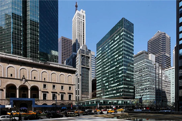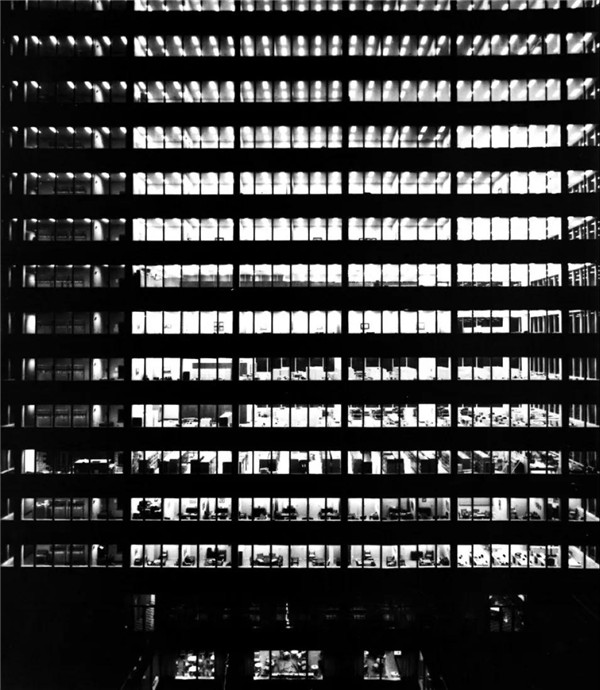 其中最重要的建筑元素之一,就是其由蓝绿色玻璃与不锈钢组成的幕墙。这项设计既经济又美观。利华大厦立面这种去物质化的轻盈感,是通过将窗户的竖框藏在一层薄薄的玻璃表皮后面,这样它们看起来就像是漂浮着、没有重量、好似不存在结构一样。立面幕墙得以实现玻璃板的效果,达到柯布所说的“纯粹的整洁”。[2]