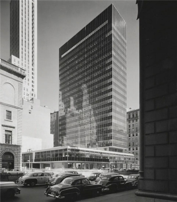 利华大厦是SOM在第二次世界大战后完成的重要作品。这一家于1936年在芝加哥成立的建筑公司,无论是作品或是执业方式,始终是美国大型建筑师事务所的标杆。在20世纪中期,他们忠实地追随密斯的设计想法,那个时期很多密斯的学生或员工先后加入SOM,对整个公司带来了不可忽视的影响。当时对国际风格有着极深成见的赖特还给SOM取了个绰号:“三个瞎了眼的密斯”(The Three Blind Mies)。