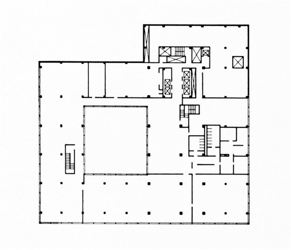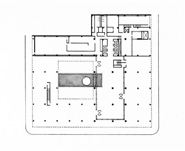 利华肥皂公司计划将利华大厦大部分的空间作为企业办公空间使用,在邦夏的设计中,他将整个地面层开放给了城市:地面层除了大堂、演讲厅和服务空间外并没有任何办公或商业店铺。同时他将面积最大的二层裙房覆盖在地面层的上方,创造出一种特别的城市空间形态—— 一些展示活动经常发生在地面层的半开放空间之中。在设计中二层和三层的空间均是被企业使用的公共空间,诸如食堂。紧邻三层咖啡厅的二层屋面提供给办公楼另一个可以活动的地面,这在20世纪中期算是一个激进的做法。