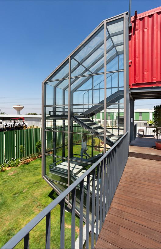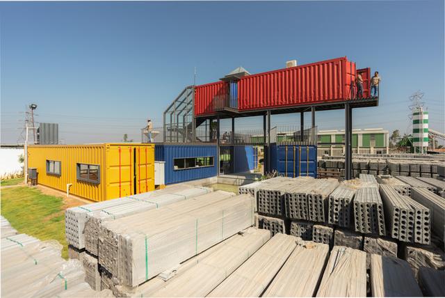 办公室位于印度南部班加罗尔,该项目从紧凑型工作空间的概念出发,融合了建筑的独立性与可持续性,减少了废物产生,通过升级循环再造对日益加剧的消费主义进行遏制,这些“容器”遵循了“迷你巢穴”的概念,让使用者可以在小空间内享受全部的便利和技术。我们的团队将四个二手集装箱改造成1500平方英尺的紧凑空间,包括一个工作站、体验中心、餐厅/配餐室、室外平台和厕所。