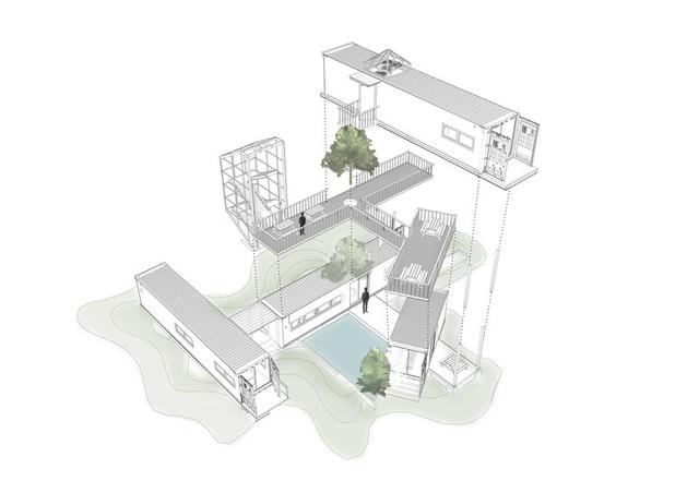客户提出希望成为一家绿色技术公司的要求,设计师选用“容器”这一概念回应该设计故事的重点,希望在原有建筑内以‘回收利用’的形式融入多功能的空间。