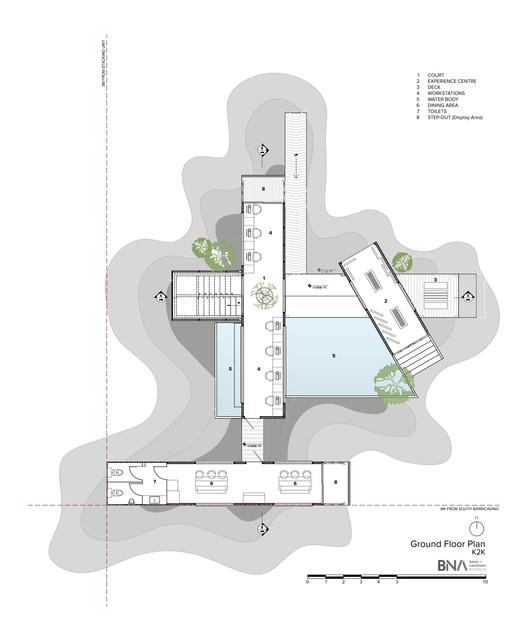 该结构对隔热性有较高的要求,因此我们采用了全新的岩棉板和纤维板,为天花板和墙壁提供被动冷却和隔热的效果。带水体的庭院周围空间以及窗户等其他开口的合理布置,使得建筑不受极端天气条件的影响。裸露在外的的服务管线经过仔细布置,在排出雨水的同时避免外表面生锈。我们坚信“少即是多”,因此很节俭地使用材料。
