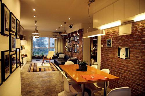整个风格为北欧风格,在简洁线条,单一的色块中运用复古红砖、灰色水泥地面和工业金属吊灯、不锈钢等工业元素,诠释自由,复古,自然的设计风格。