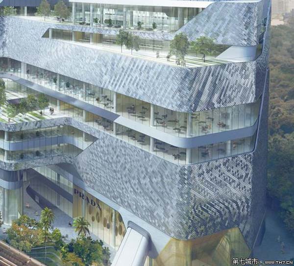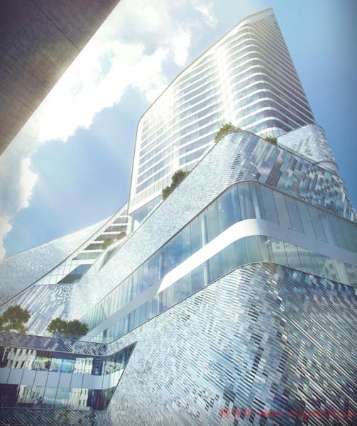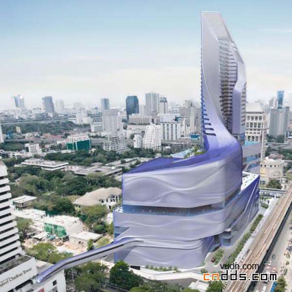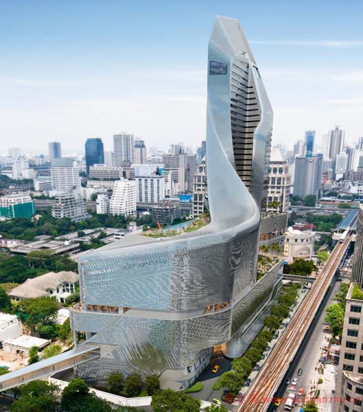根据传统的泰国建筑的主题和模式,英国公司的设想一个外部的皮肤,主要特点是一系列的铝挤压瓷砖,导致在一个动态的模式响应和反映其环境条件。它将环绕七层高的豪华商场大楼的附近,并向上塔的周围是由两个垂直光威尔斯扩展。这些垂直结构将开放内部地区加强梯田,同时将酒店的功能;私人活动面临 lai nert公园,宾馆酒吧、接待中心和天空阳台面对城市中心。