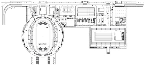 建筑面积:53 780m2(自行车馆 29 800m2,游泳馆 23 980m2)