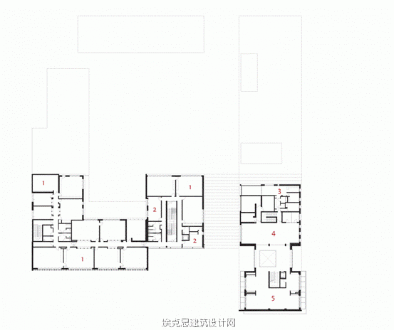 来自建筑师的描述。我们将整个建筑围绕一套设备而建,契合其文化教育功能,希望能够以统一的公共设施实现城市重建。教育文化中心由七个建筑体围绕同一建筑空间而成:一所集幼儿园和小学于一体的学校、修建部分、一间托儿所、一间图书馆和一间功能室。