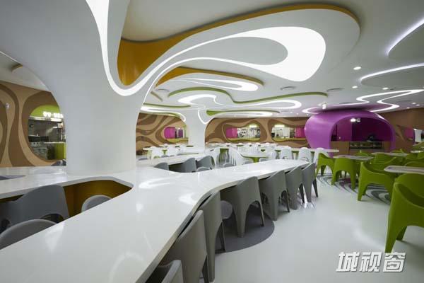 Kapitol的设计充分利用了作为聚会场所的空间、视觉地标的概念。它在这个空间内创建了一个鲜明的标志性场所,让人们在聚会、社交、就餐之时都能身处五彩缤纷的环境中。这些有机的“岛屿”不仅向空间注入了特色与当代审美思想,还成为重要的地标,人们围绕着柱子相识、聚会。形态自由的天花板将人们的视线引向了外部与上方,同时也提供了隐蔽的局部照明,方便就餐。