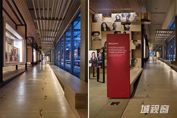 当地时间2012年2月4日,位于美国西雅图的比尔及梅琳达·盖茨基金会访客中心正式对外开放,中心以互动的方式向参观者介绍这一世界最大的私人慈善基金会的故事。整个中心由几个不同的画廊展馆组成。还未真正步入中心内,体验已经悄然而至:中心内的展览信息标示分布在面向街面的外立面上,漫步在人行道上非常容易就能看到。沿着与人行道平行的一个斜坡可以清晰地看到中心内部的一些活动。可以说,人行道和斜坡的设计模糊了场馆内外的界限,是行人在不自觉中成为中心的访客。