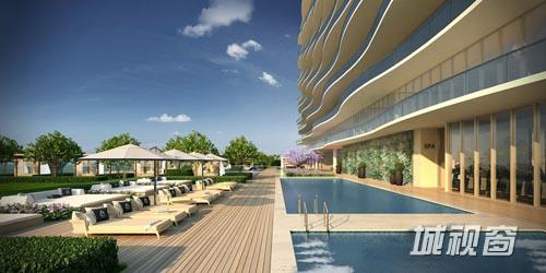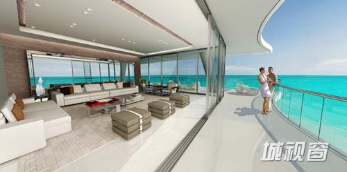 借助于周边的海景和当地怡人的气候,公寓的内饰使用的玻璃幕墙,推拉门,以及宽阔的阳台