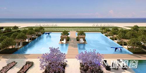 游泳池设置在酒店外的海滩边