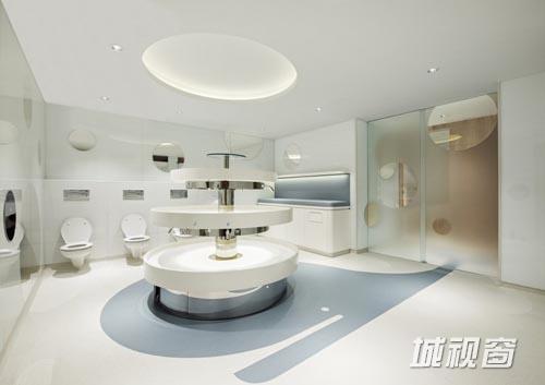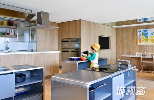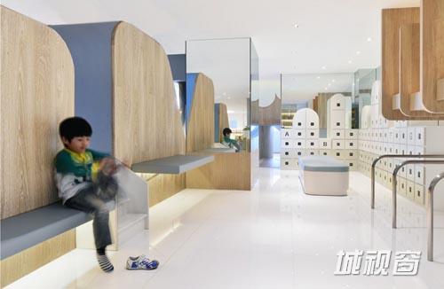 不同的功能空间内设计并放置了两套家具系统,迎合了儿童和成人各自的需求。举例来说,服务台安装有楼梯,使孩子们可以爬上来与员工直接交流沟通。创意厨房依据专业厨房的模式建造而成,并配备有不锈钢工作台和厨房设施。所有的配套设施都是儿童专用尺寸,营造了真正的烹饪氛围。同样地,浴室内也有两种高度的洗手台,并设计成喷泉的形态,令家长和儿童共享同一种设施,进而培养更加亲密的关系。