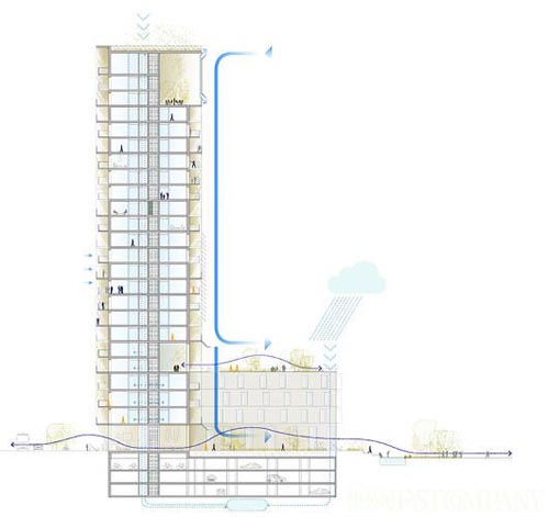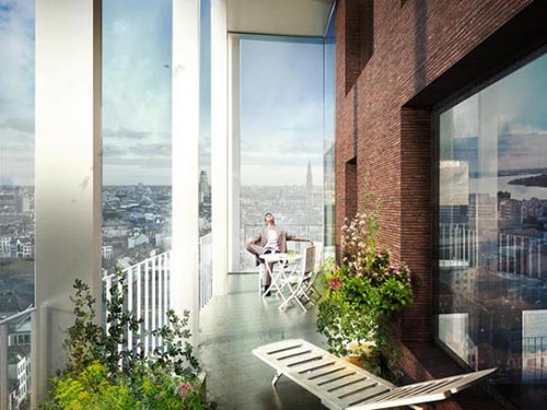 这栋由C.F. MØller建筑师事务所和Brut 建筑与城市设计事务所联合设计的新型多功能高层住宅楼位于比利时的安特卫普市,其主要设计理念就是:通过建筑设计增进邻里交流。