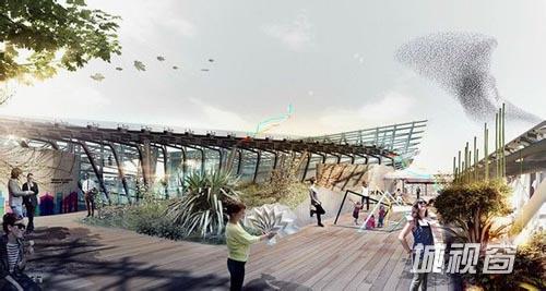 意大利馆是由来自罗马的事务所 Nemesi & Partners 设计,“城市森林'占地13000平方米,该方案面向d’acqua广场(水广场)而设,名为“意大利的幼儿园”。