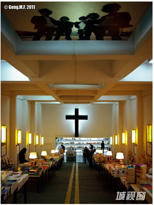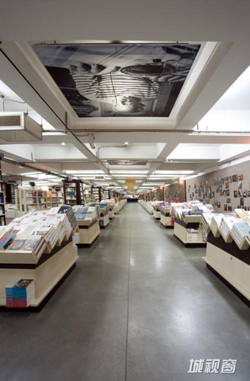 先锋书店原本是一个巨大的地下停车场,面积有四千平方米,地面为高标水泥,墙面为混凝土建筑,楼层高度不到三米,顶部全部为通风、水管和消防设施,红色、白色和灰色的管道有着工业时代的特点。