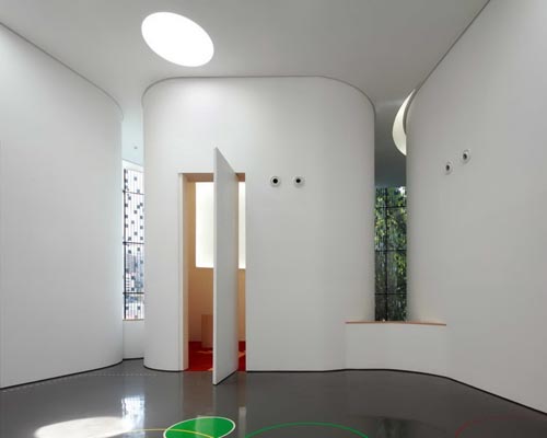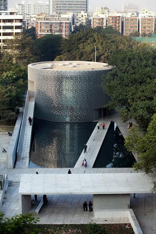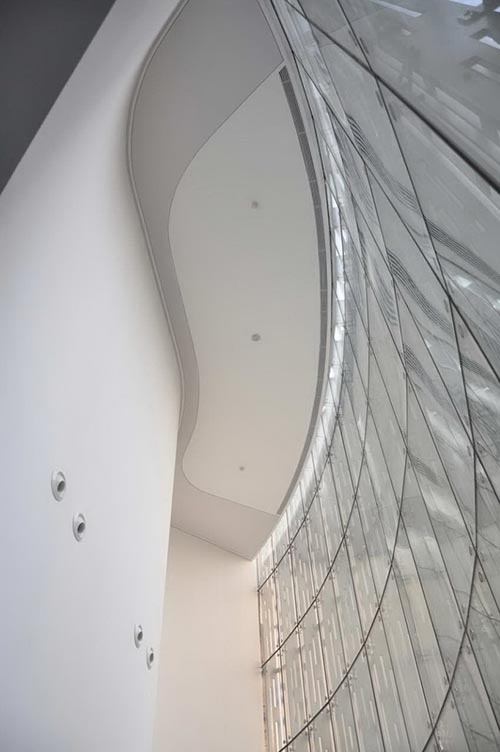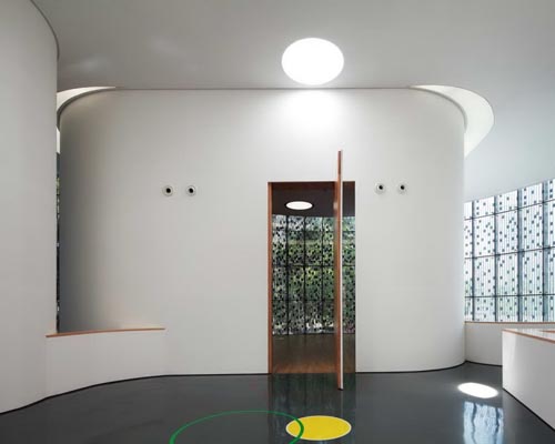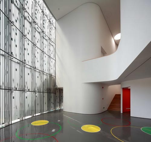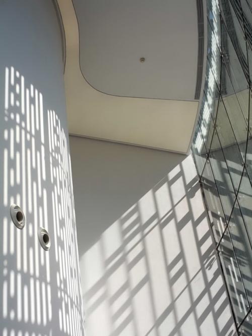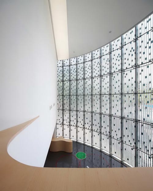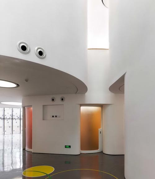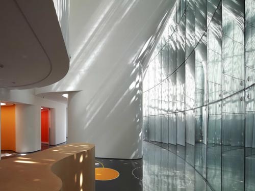 人们在建筑中的特殊体验是这个项目设计的重点。建筑内部的一条连续的螺旋环路舒缓地串联起整个序列性的片断:到达、在亲友的注目下穿过水池步向婚礼堂、合影、等候、办理、拾级、远眺、颁证、坡道、穿过水池、与等候的亲友相聚。在建筑内部空间,以需要相对私密的小空间来划分完整的空间体量,剩余的充满整个建筑具有流动性质的公共空间之间形成¬通高与镂空等丰富的空间效果。包裹整个建筑主体的表皮由两层材料构成,外表皮的铝金属饰面用细腻的花格透出若隐若现的室内空间,内表皮则由透明玻璃幕墙构成真正的围护结构。整个建筑内部空间和外部表皮统一的白色烘托出婚姻登记的圣洁氛围。