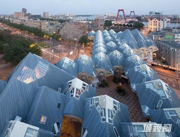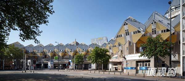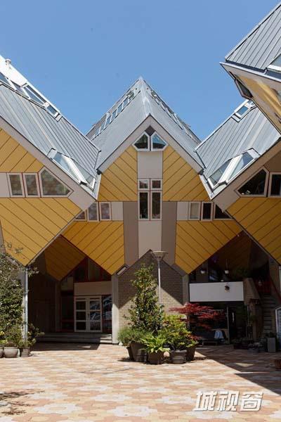 位于鹿特丹的标志性设计超级立方体(Cube Houses)由皮特布洛姆(Piet Bloms)设计,是上世纪70年代中期一个由40个房间组成的住宅群,建筑形式前卫时尚、鲜为人知,立方体形状的独立住宅被支撑在巨大的六边形柱子之上,但由于楼层间的不连续、复杂的竖向构造以及多处的黑暗角落空间,致使超级立方体建成后大部分被空置至今。