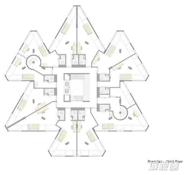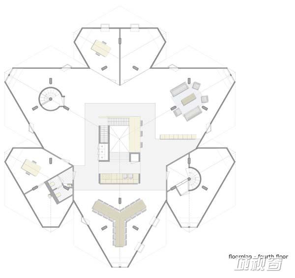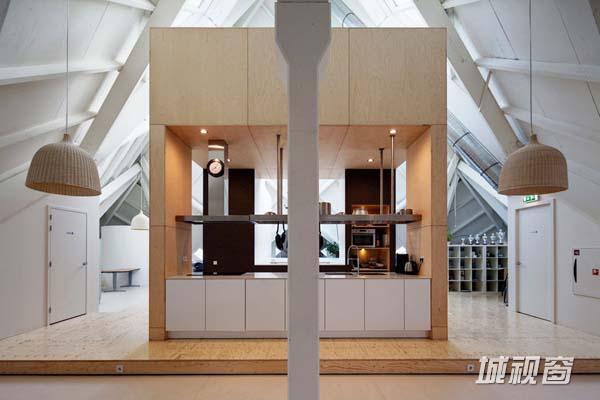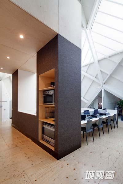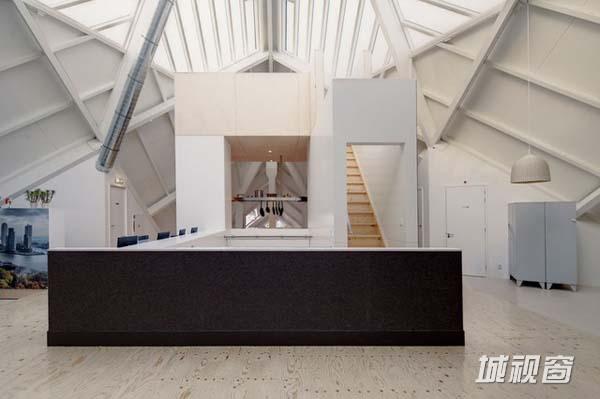 来自荷兰工作室personal architecture着手对其进行改造,想在这个设计中解决三个问题:楼层之间的不连续性、单调乏味的垂直空间以及中间楼层的阴暗题。personal architecture增设了楼层间的联系楼梯,加强居民之间的互动,同时它也是楼梯、服务空间的支撑结构。提供了多种功能性,增开了顶部天窗解决采光问题,同时将厨房、卫生间、储藏间等次要功能安排到一些角落空间,同时为超级立方体注入了更多方便使用的公共空间。