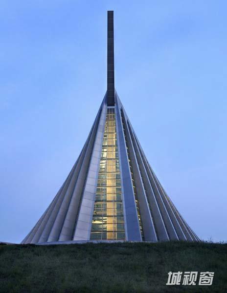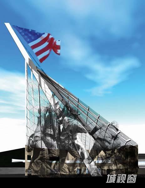 2006年11月开馆的美国海军陆战队博物馆(The National Museum of the Marine Corps),在华盛顿特区以南30英里处的森佩尔·菲德利斯纪念公园(Semper Fidelis Memorial Park)的核心位置,为纪念海军陆战队231周年而开放。由美国著名设计师柯芬特设计,呈现出令人振奋的视觉效果。设计的灵感来源于一幅关于二战时期的照片,照片中展出的是一名英勇的士兵勇敢地将美国国旗插在了Suribachi山顶。这个形象被应用于设计,成为博物馆标志性的结构。从这个角度出发,设计师抽出了照片中的中心元素,形成一个210英尺高的钢铁杆,它主导和驾驭着整个入口大厅,支撑着一个肋骨形圆锥形的天窗。